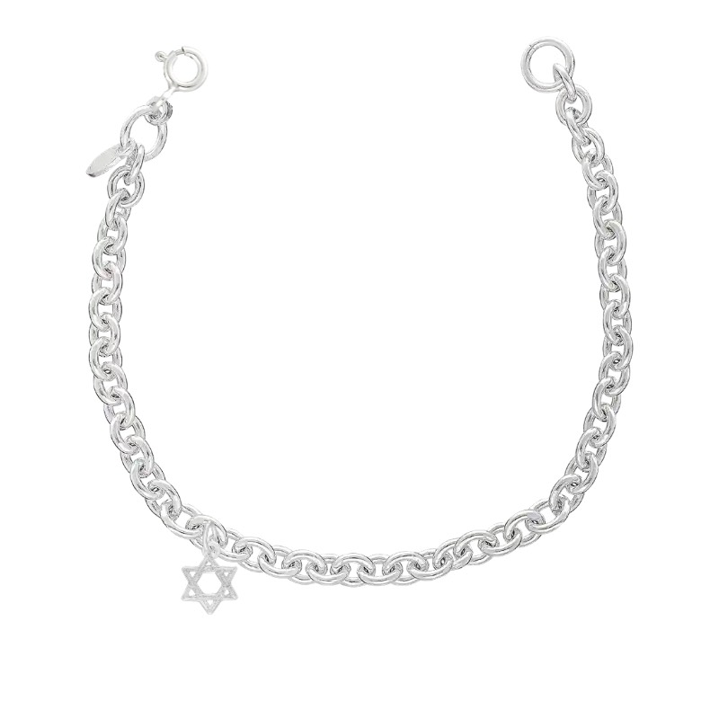 Base product: Medium Cable Chain (7.5in) Closure: Spring Clasp 1 Charms: – Star of David